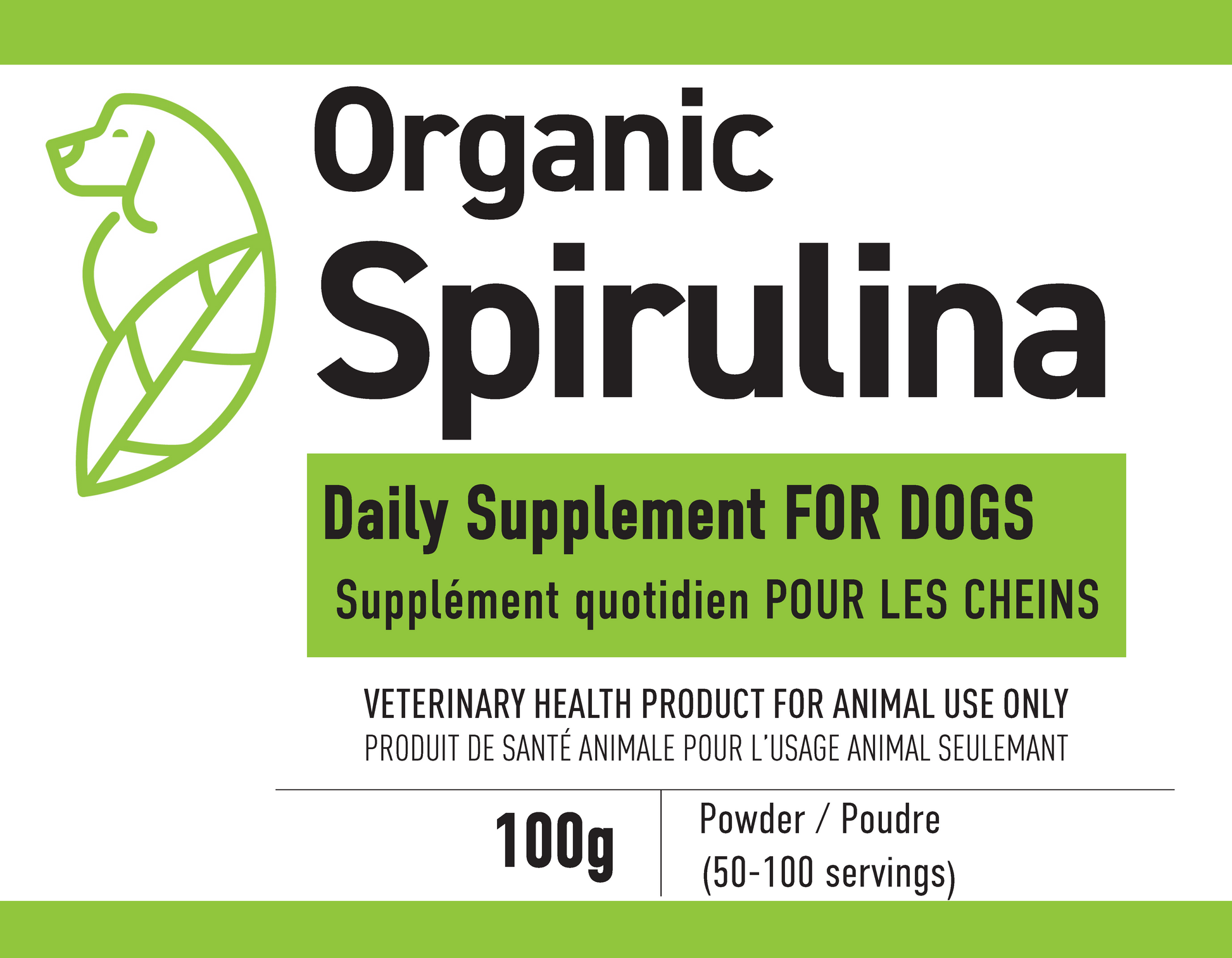 Ingredients: 100% Organic Spirulina, a nutrient-packed superfood for optimal canine health.